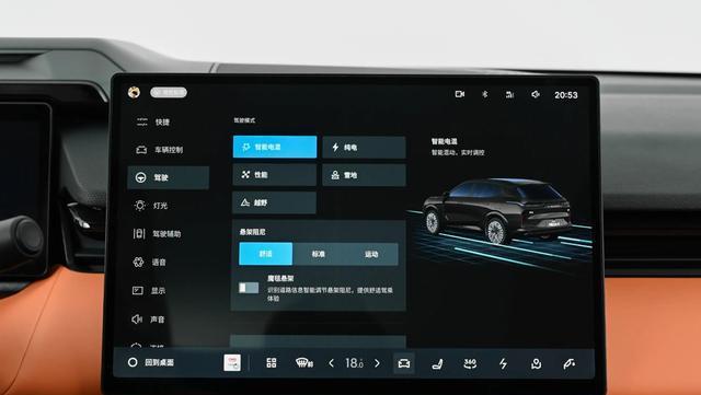 动力系统上,新车搭载成熟可靠的1.5T插混动力总成,由1.5T Evo电混专用引擎与双电机组成,匹配3挡DHT Pro变速箱,系统综合功率达300千瓦,综合扭矩615牛·米,动力输出强劲且响应迅速,可轻松应对城市通勤与高速超车场景。续航方面,配备38.2千瓦时大容量磷酸铁锂电池组,CLTC工况纯电续航里程达230公里,满足日常通勤纯电出行需求;综合续航里程超1400公里,兼顾长续航与低能耗。底盘配备CCD连续可变阻尼电控减振系统,兼顾行驶稳定性与舒适性,为驾乘人员提供平稳的出行体验。(配图第一张为本车型,其余配图仅供参考)